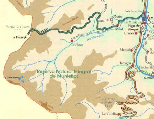 MUNIELLOS (Acceso, horario estimado, desnivel, mapa de curvas de