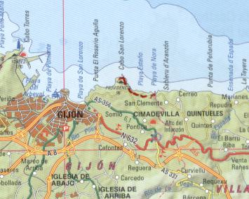 La situación de la senda con respecto a Gijón.